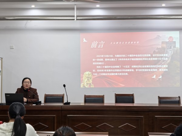 为深入学习贯彻党的二十届四中全会精神,切实把全院师生的思想和行动统一到党中央决策部署上来。12月9日下午,理学院邀请马克思主义学院副教授,校理论宣讲团成员刘娟老师作专题宣讲报告。学院党委副书记主持报告会,学院领导班子、全体教职工及学生党员齐聚会场,共同聆听这场兼具理论深度与实践温度的精神盛宴。